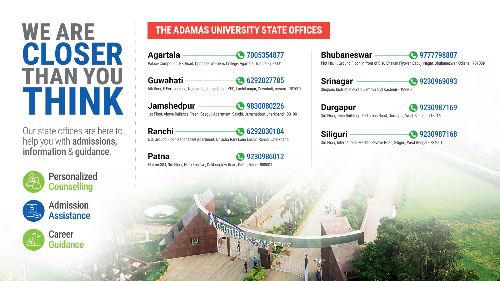 Adamas University, rated the Best Private University in Kolkata, West Bengal, India, was established to provide a solution to all educational needs under one roof. It aims to create an environment for students that will not just arm them with the right kind of knowledge, but also develop them as well-rounded members of society.