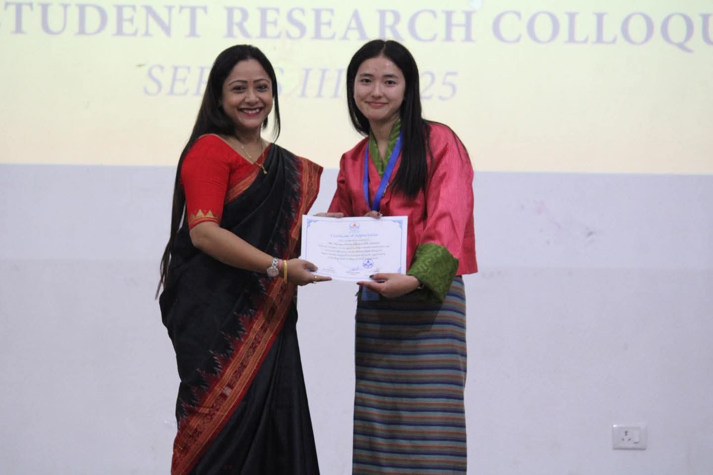 The International Relations Office is delighted to share that Dr. Parama Kundu, Assistant Director & Zonal Head – International Relations, undertook the maiden institutional visit to Norbuling Rigter College (NRC), Paro, Bhutan marking the beginning of a meaningful collaboration under the Memorandum of Understanding between Adamas University and NRC, and opening new avenues for future academic exchange. During this visit, Ms. Sanjita Bhattacharya (M.A. English Language and Literature, Semester III) and Ms. Aliviya Maity (MBA – HR/Marketing, Semester III) successfully participated and were awarded certificates at the Rigter Student Research Colloquium – Series III, hosted by NRC from 20th–23rd August 2025. Their participation, alongside student researchers from institutions under the Royal University of Bhutan, represented a significant step in strengthening international academic dialogue and fostering a vibrant research culture.